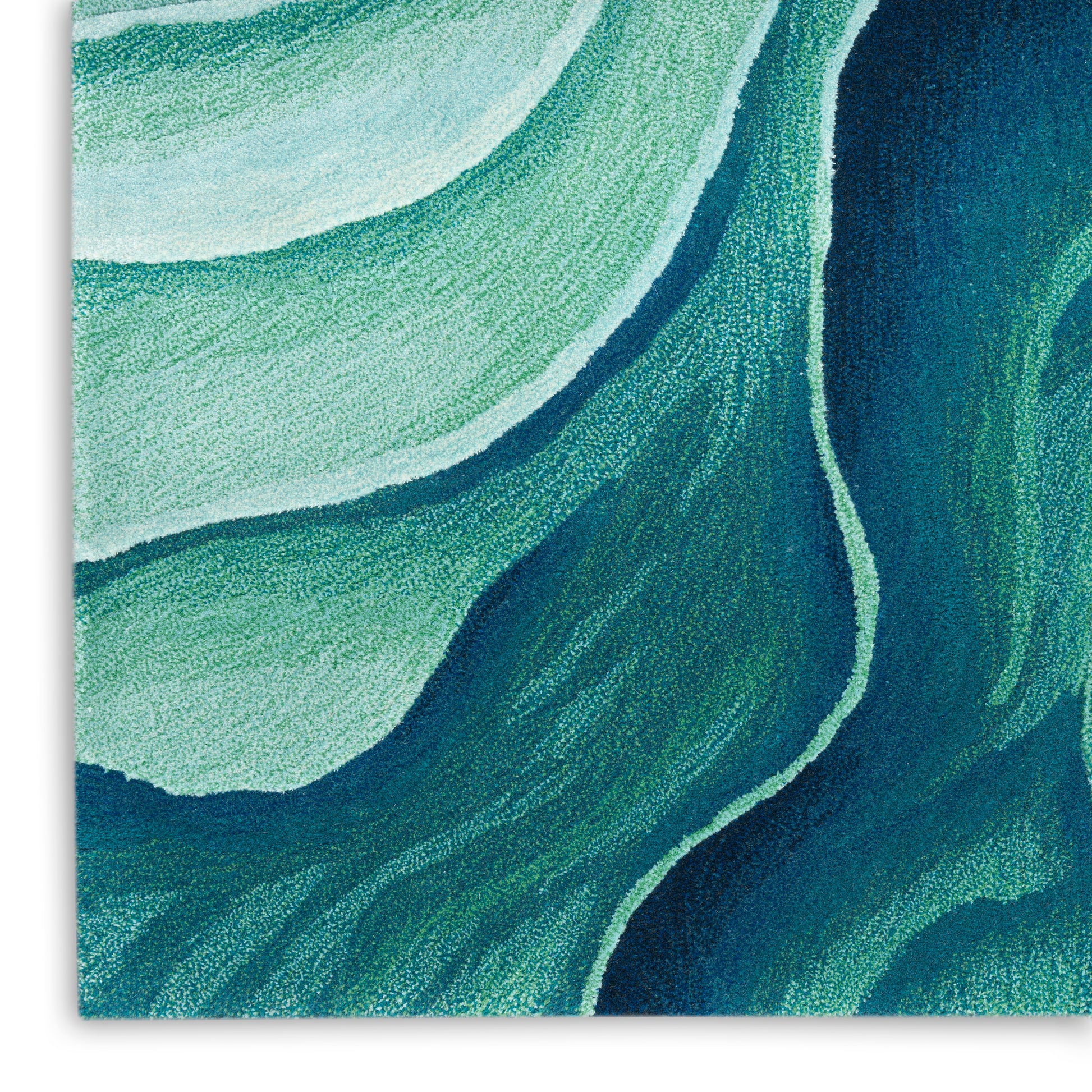 Create a captivating focal point for conversation with this abstract rug from the Prismatic Collection. Tight ripples of multi-toned green and silver come together in a mesmerizing pattern, punctuated by hand-carved accents that add a uniquely dimensional look. Handmade from a blend of New Zealand wool and silk-like Luxcelle™ fibers that beautifully capture changes in light.