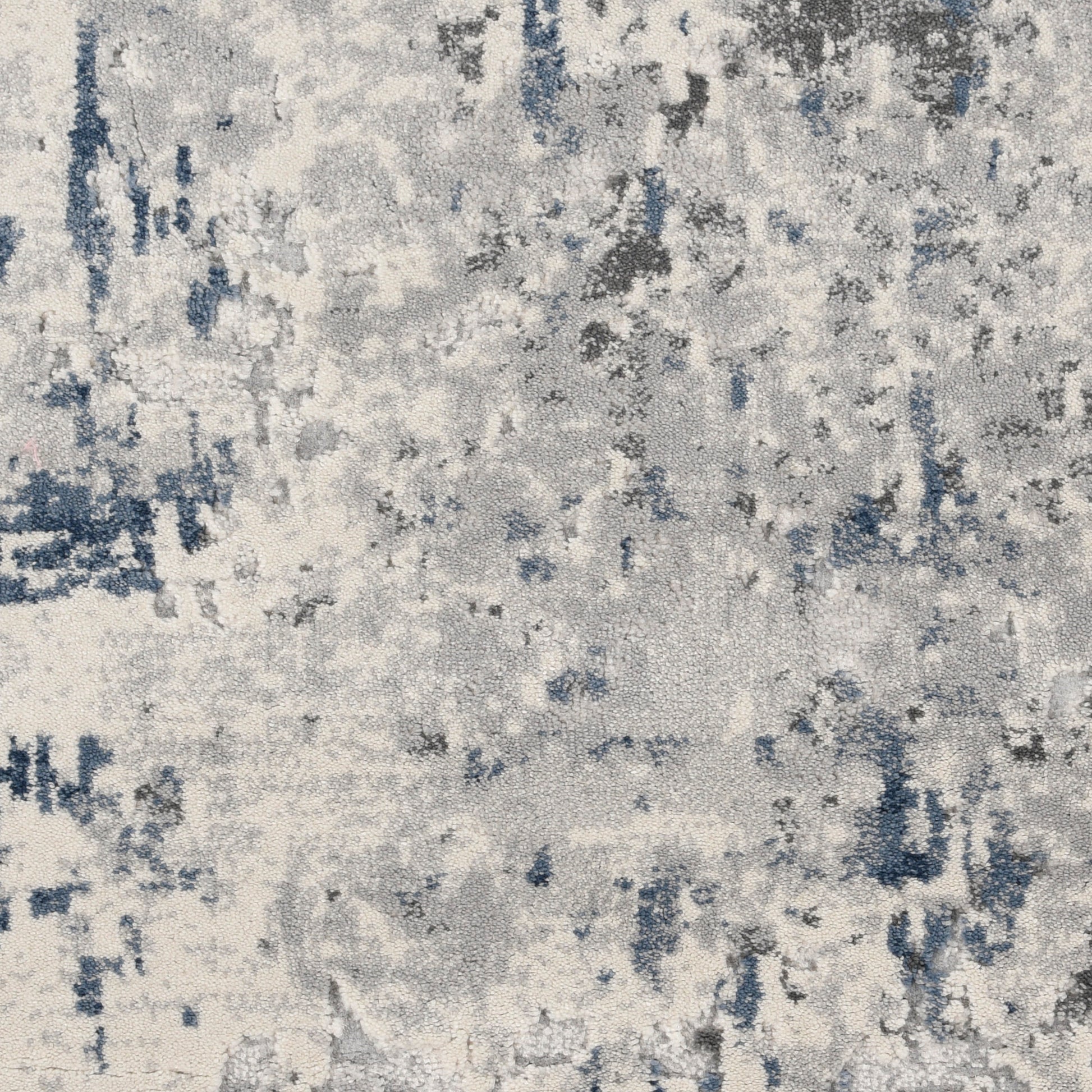 Abstract tones and carved distress patterns bring a textured elegance and modern chic to this Rustic Textures Collection hallway runner rug. Slate blue and grey splashes on an ivory field of soft, easy-care fibers brings a modern artistic air to any interior décor.