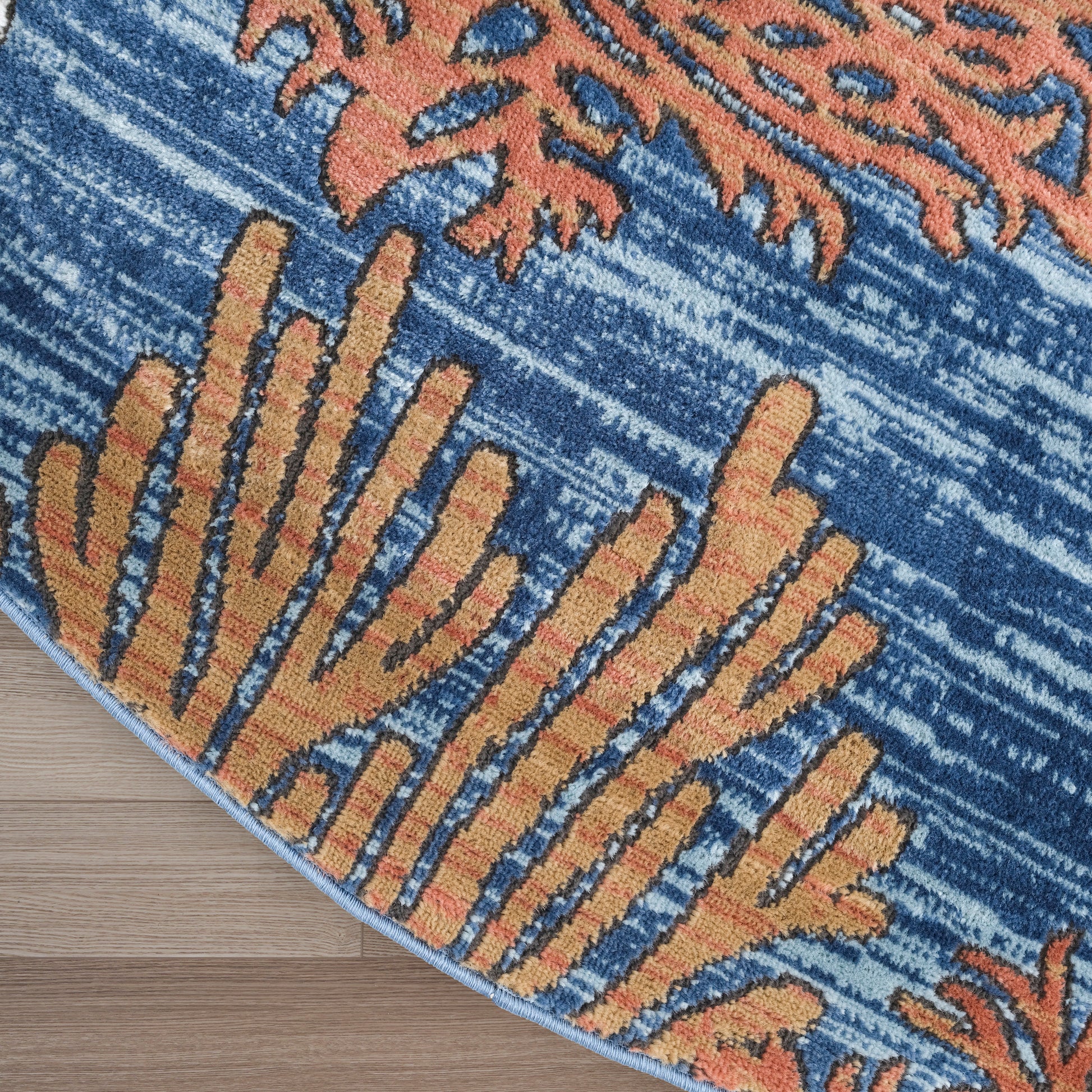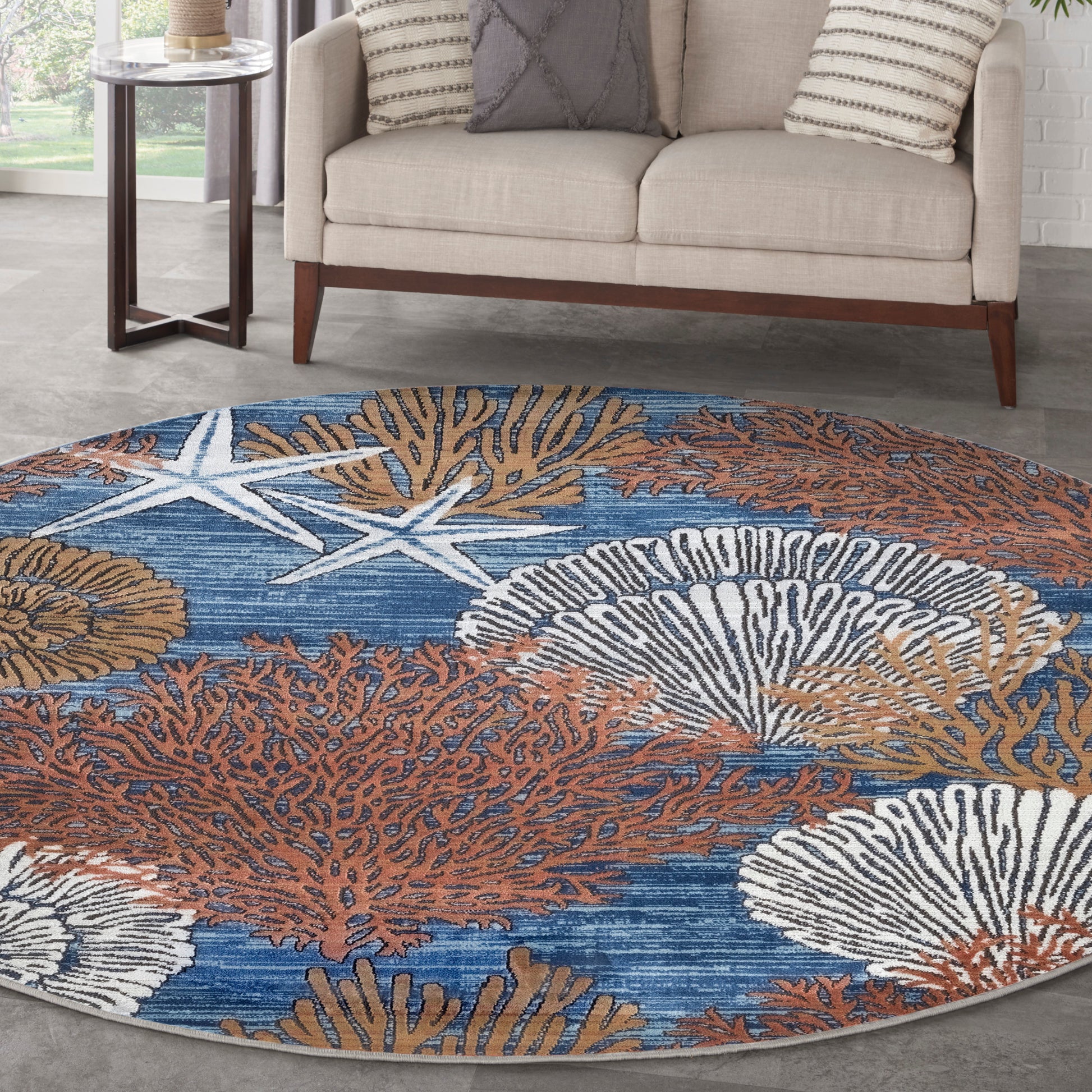 Nourison Seaside 5'3" x Round Blue Multicolor Coastal, Nautical & Beach Indoor Rug