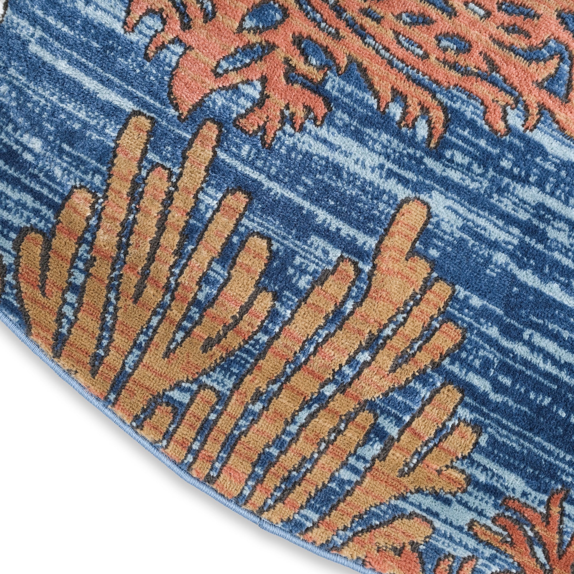 Nourison Seaside 7'10" x Round Blue Multicolor Coastal, Nautical & Beach Indoor Rug