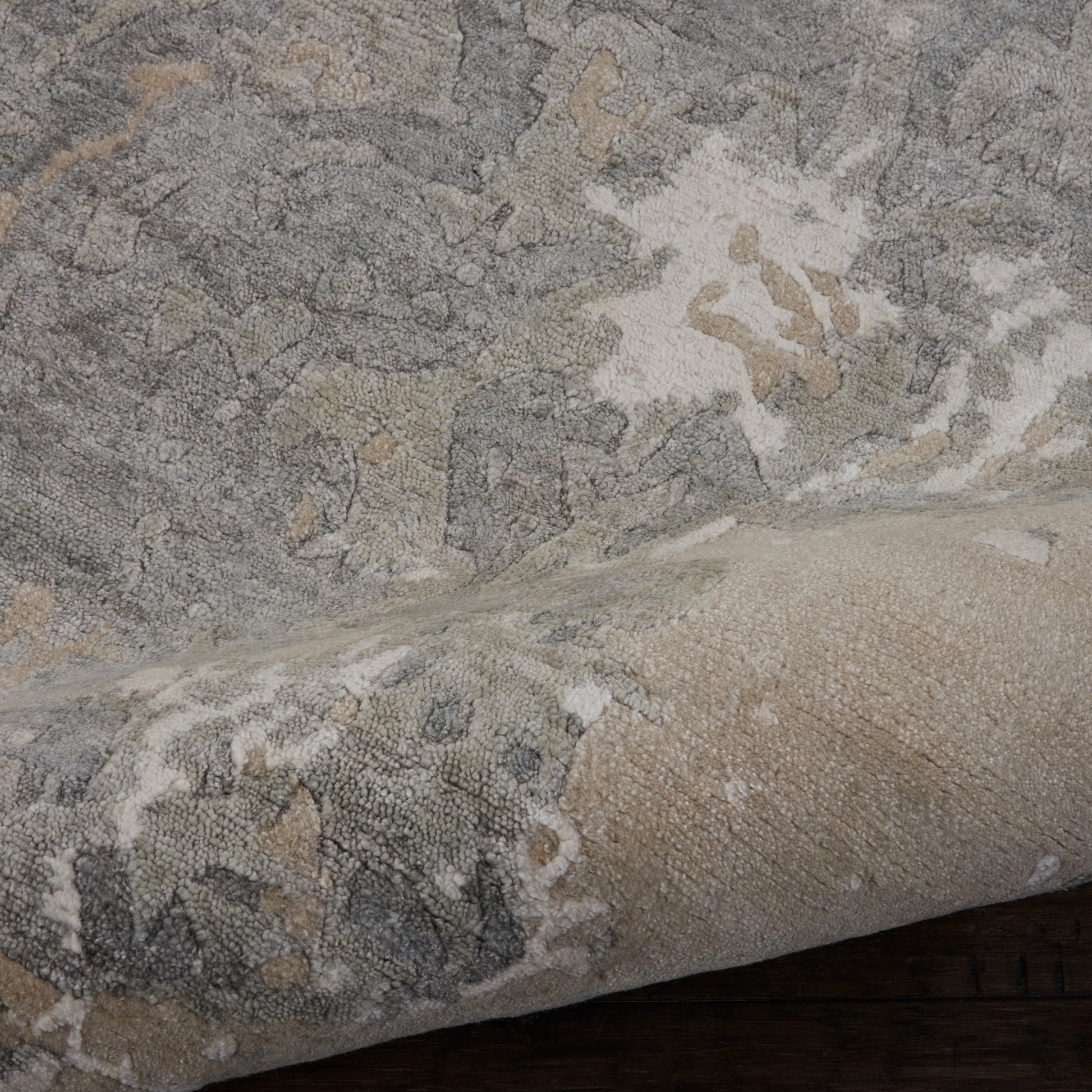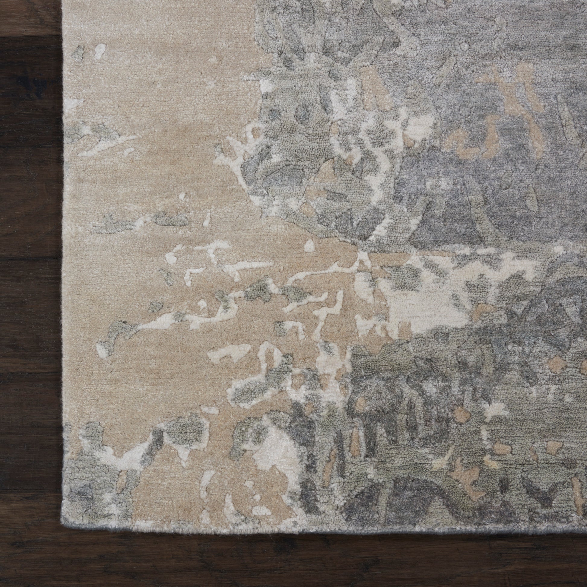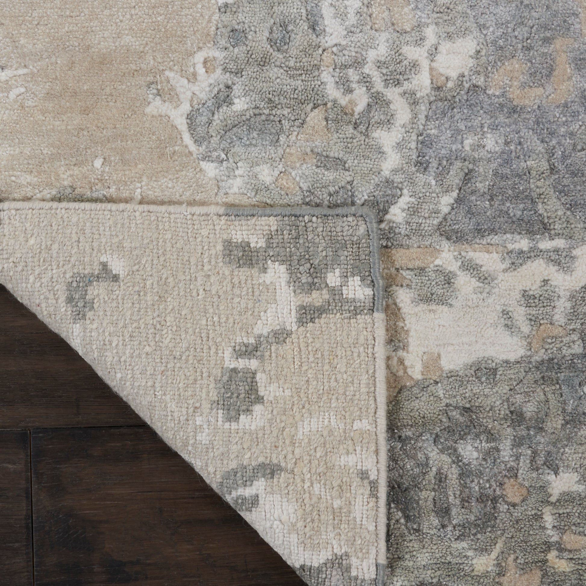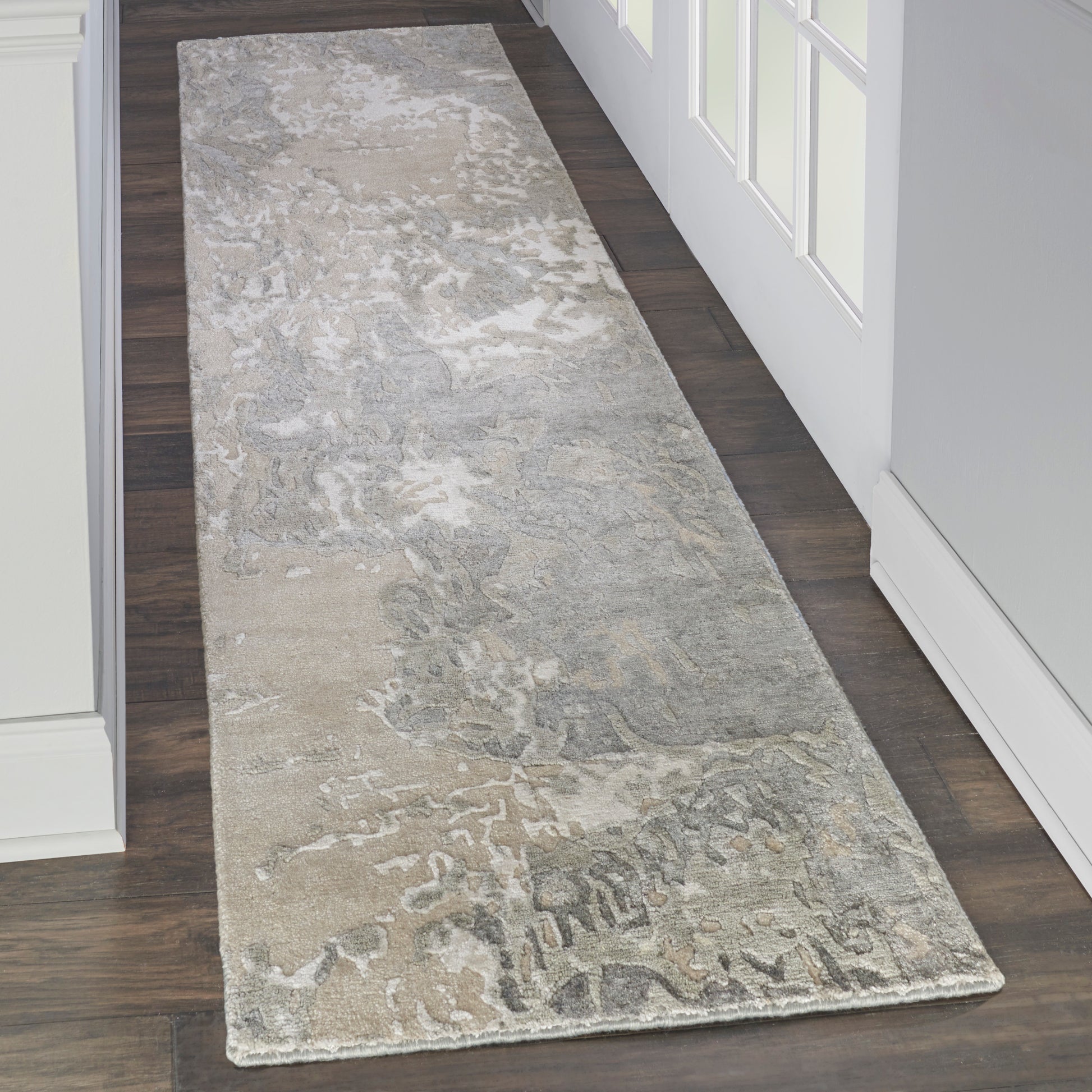Deep grey abstracts roll like clouds across the beige and cream surface of this Silk Shadows collection runner rug. Hand knotted from New Zealand wool and silk-like bamboo fibers, this contemporary rug is hand carved and hued to create eye-catching contrasts that still fit into any décor.