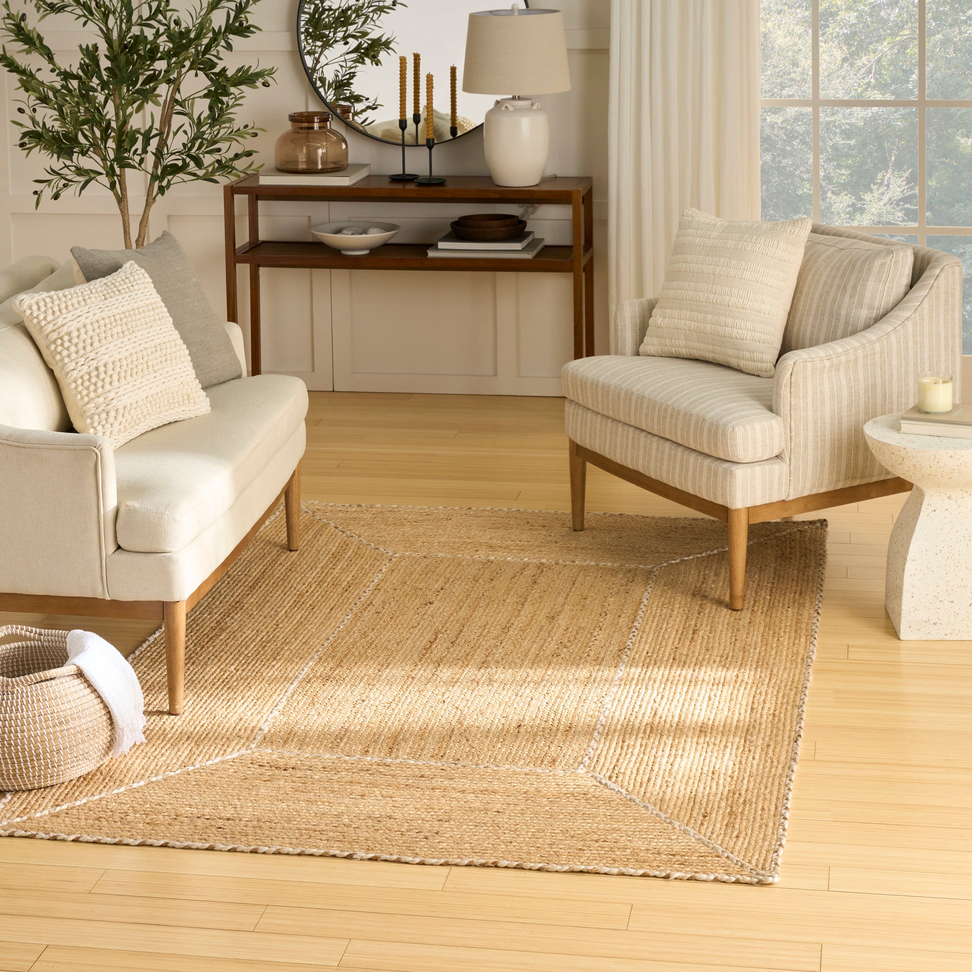 This braided rug from the Terrazzo Jute collection boasts a bordered design that adds a refreshing pop of pattern to your décor. The flatweave construction creates a stylish yet sturdy foundation that’s great as a standalone centerpiece for your furniture, or as part of a layered look. This eco-friendly rug is made from 100% jute for lasting style.