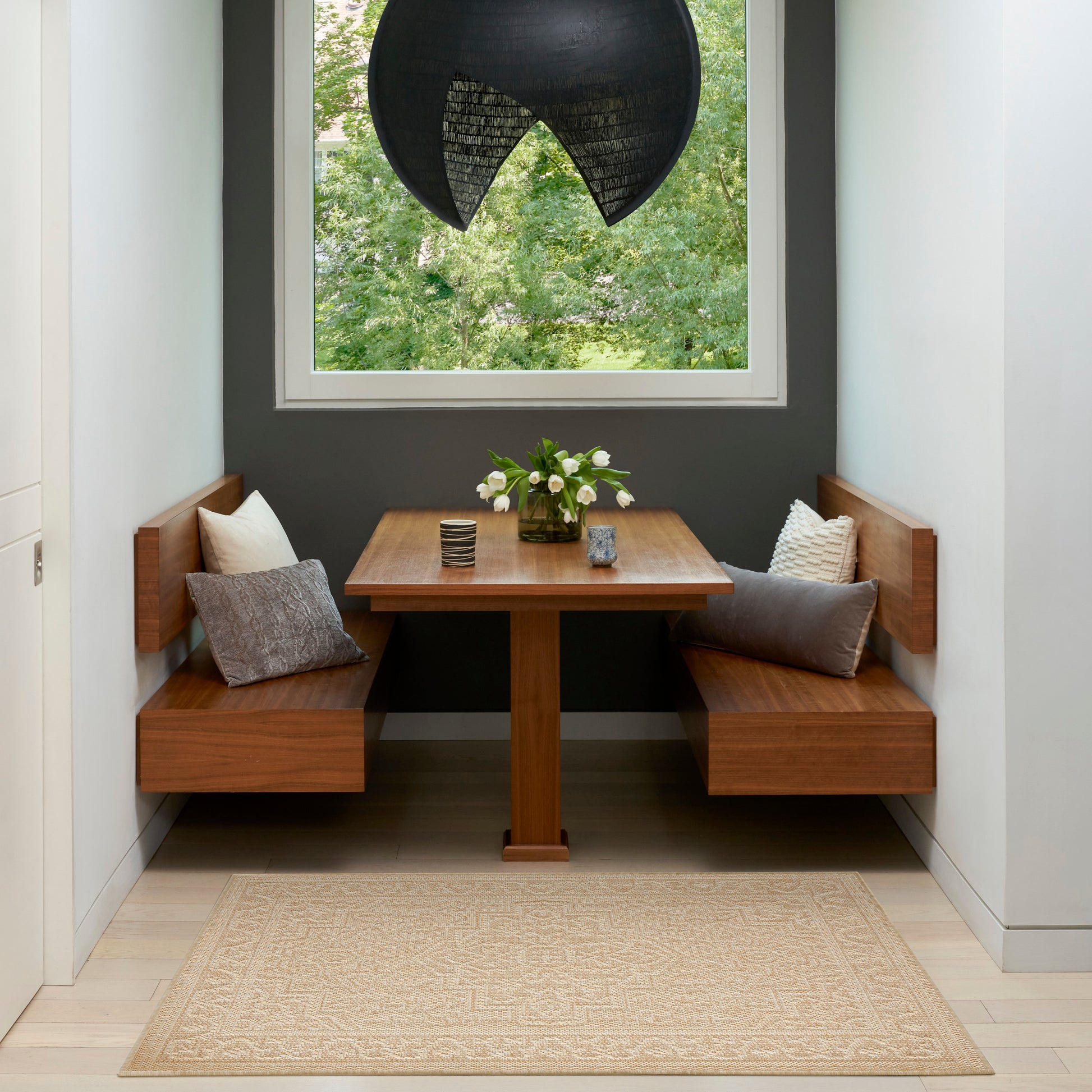 This cream outdoor rug from the Tulum collection brings timeless style with a modern twist to indoor and outdoor spaces alike. The flatweave construction has a substantial feel, while the rich colors and tonal variations create a visually engaging look. This transitional rug is made from polypropylene for easy cleaning, making it ideal for a variety of spaces including the living room, bathroom, balcony, kitchen, and patio.