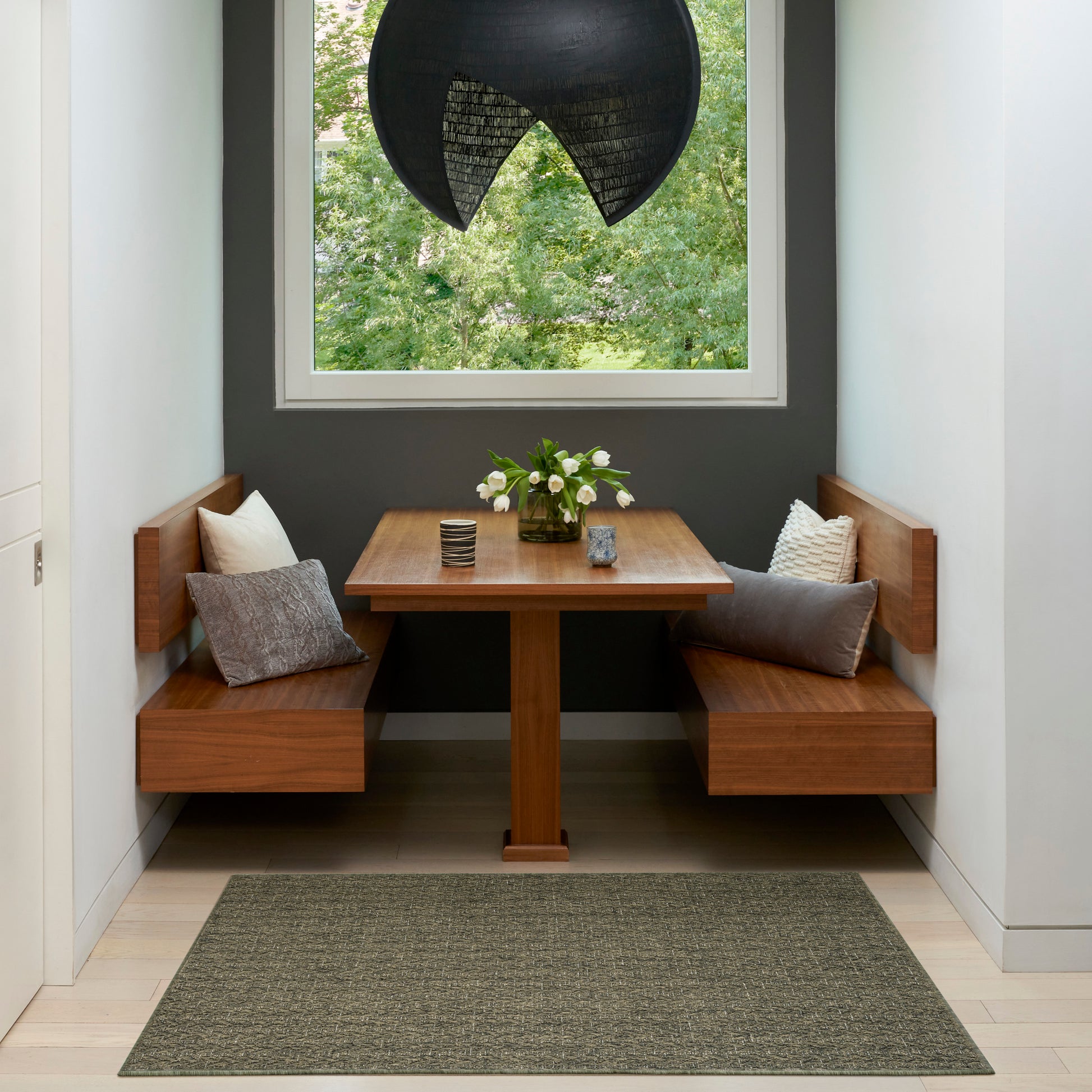 This olive-green outdoor rug from the Tulum collection helps make gatherings on the patio or balcony extra cozy. The sweater-like pattern and richly colored yarns, enhanced with tonal variations, create an inviting feel ideal for both indoor and outdoor spaces. Made from polypropylene for durability and easy cleaning.