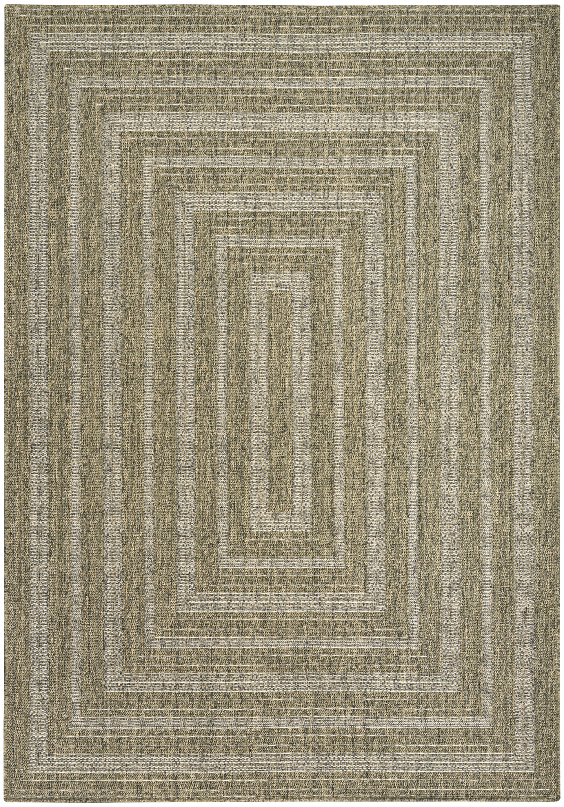 Bring timeless style to your space with this olive-green outdoor rug from the Tulum collection. The concentric rectangular pattern is designed to draw the eye—perfect for defining a patio conversation area or living room. This geometric rug, presented in cozy earth tones with subtle tonal variations, is made from polypropylene for easy cleaning.