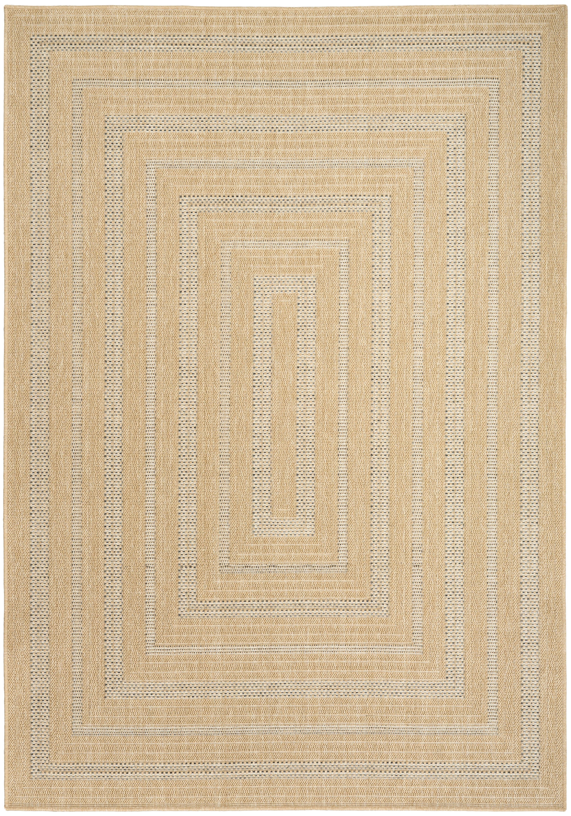 Bring timeless style to your space with this taupe and grey outdoor rug from the Tulum collection. The concentric rectangular pattern is designed to draw the eye—perfect for defining a patio conversation area or living room. This geometric rug, presented in cozy earth tones with subtle tonal variations, is made from polypropylene for easy cleaning.