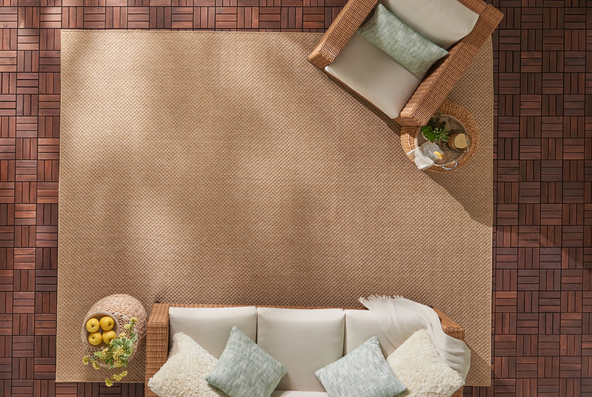 Equal parts stylish and functional, this taupe outdoor rug from the Tulum collection helps tie patio conversation areas together with ease. The basketweave pattern, presented in rich earthy colors, is enhanced with subtle tonal variations that impart a natural look. This modern rug is flatwoven with durable, easy-clean polypropylene fibers, making it ideal for both indoor and outdoor spaces.