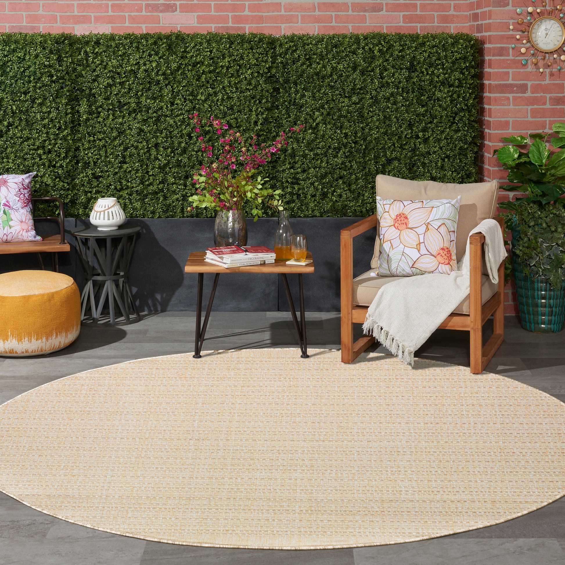 Nourison Tulum 8' x Round Cream Outdoor Rug