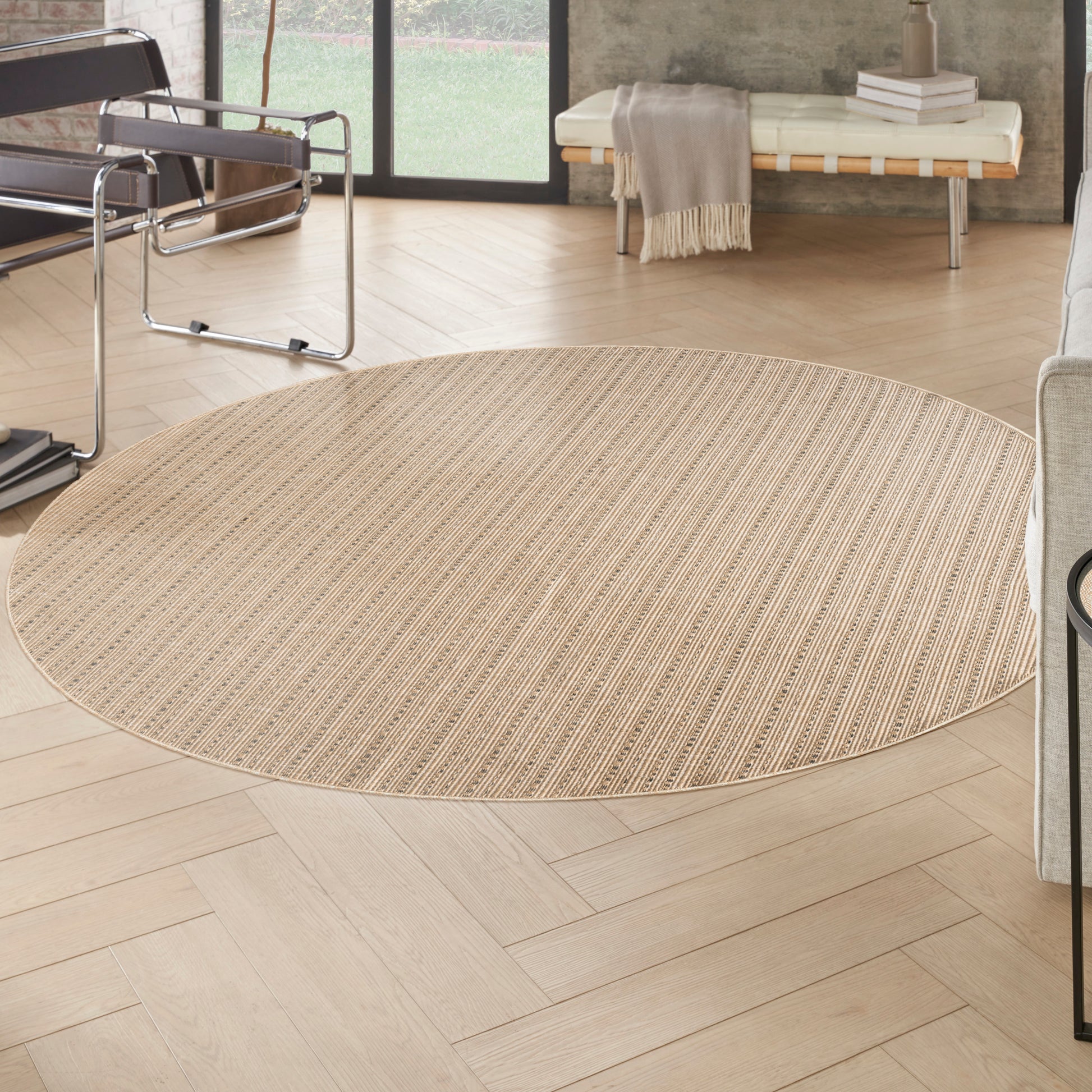 Nourison Tulum 8' x Round Taupe Outdoor Rug