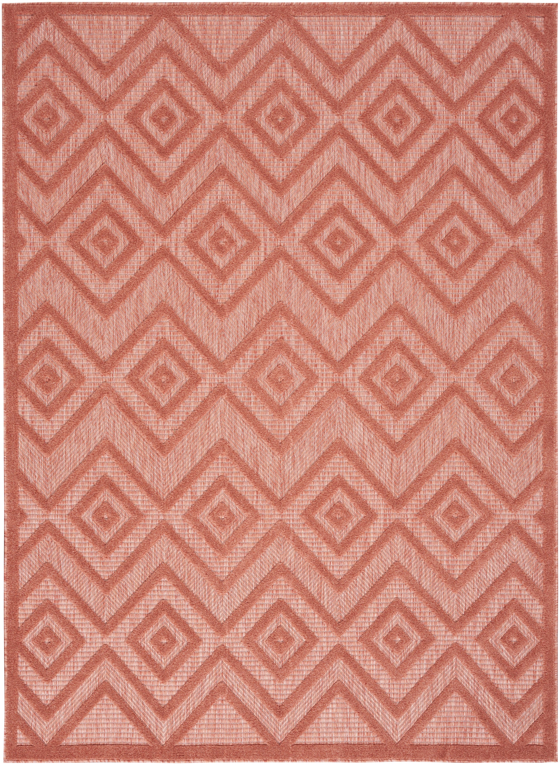 This coral orange Nourison Versatile Collection rug brings inviting style to your favorite indoor or outdoor space. With a raised diamond design that stands out beautifully against its flatwoven ground, this outdoor rug enhances your space with delightful texture and modern appeal. Machine-made from durable, easy-to-clean fibers, Versatile is great for high-traffic areas inside the home as well as all seasons spent outdoors. To care for this rug, we recommend rinsing outdoors with a hose. Air dry both sides fully; do not place into a washing machine.