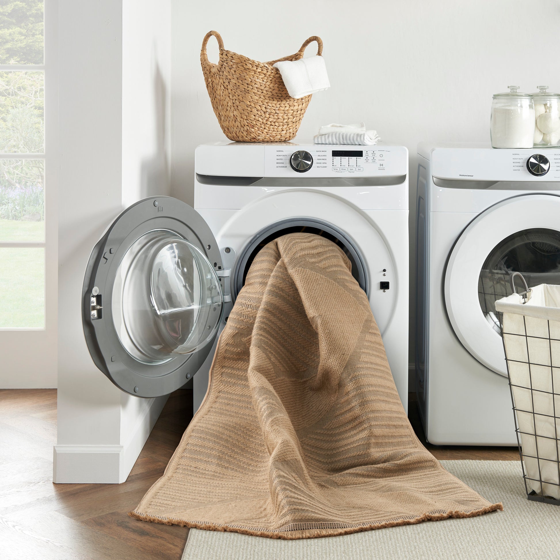 With this geometric rug from the Washable Jute collection, you can have sophisticated style that’s also ultra-easy to clean. This modern flat weave design features a chic center diamond in soft beige, which is finished at both ends with a short, twisted fringe. The natural jute fibers are reinforced with a blend of cotton and synthetic yarns that allow for machine washing. Simply wash on a cold cycle and line dry.