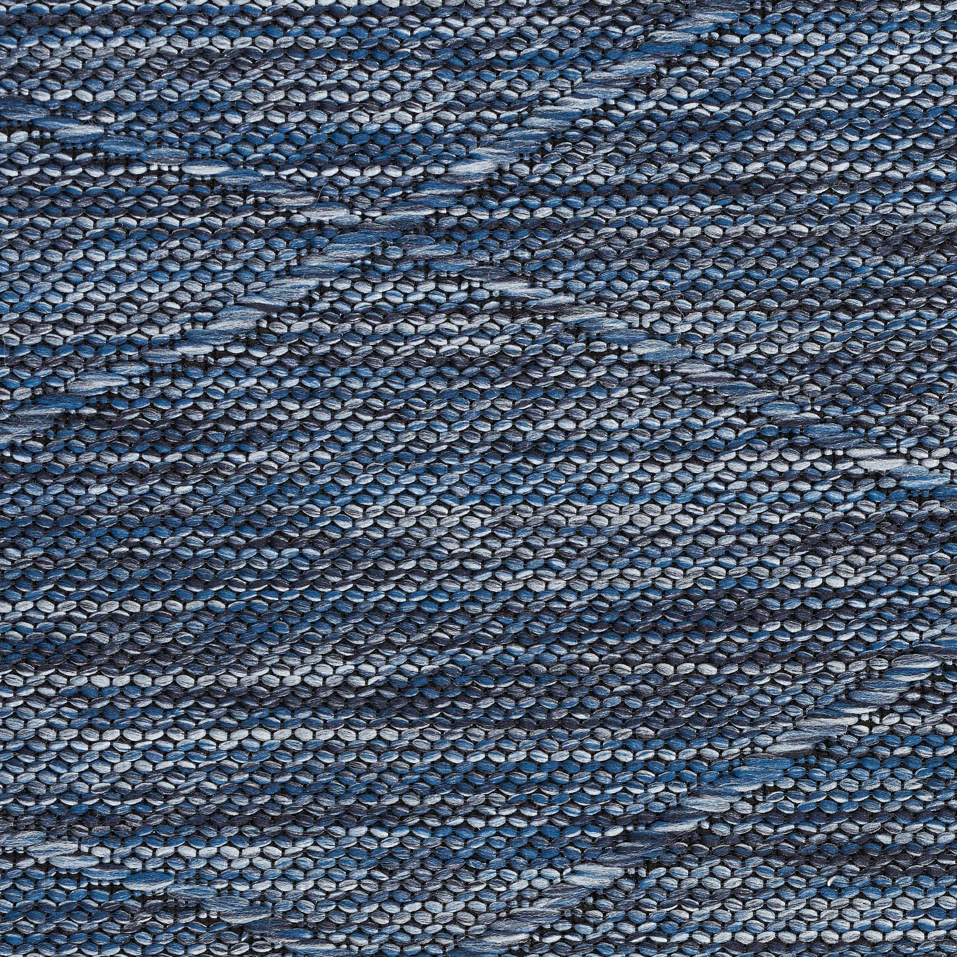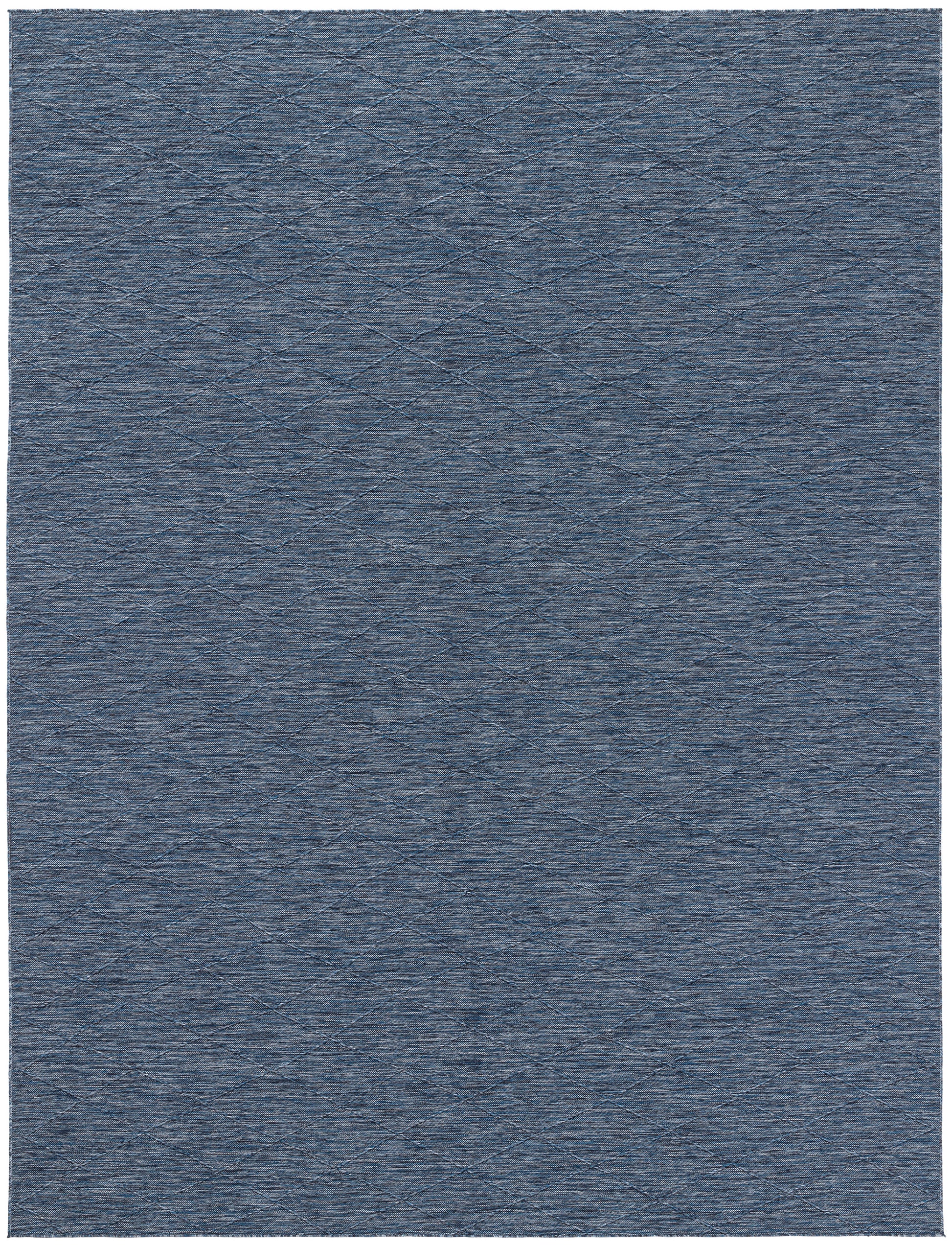 This machine-washable outdoor rug from the Washable Solutions Collection depicts a geometric lattice pattern, featured in this refined navy and blue colorway, that is woven onto the low-profile construction for visual and tactile appeal. Performance-driven polypropylene fibers ensure this machine-made rug is softly textured, easy to clean, and does not shed. Finished with a non-skid backing for added safety on hard floors. Place rugs sized 8 x 10 or larger in a commercial washing machine.
