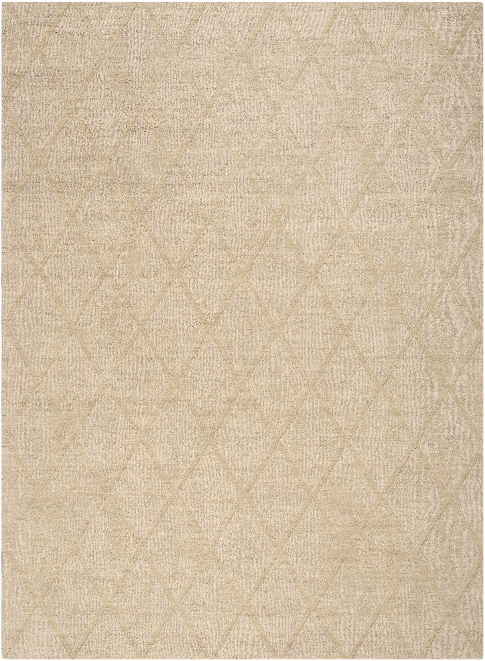 Invite a touch of understated elegance to your space with this beige geometric rug from the Wool Haven Collection. Featuring a simple trellis pattern on a solid ribbed ground, this rug boasts a soft texture that feels great on bare feet. This handmade rug is woven from 100% wool yarn that is naturally durable and easy to clean.